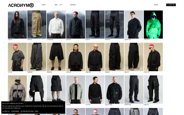 Description: ACRONYM® GmbH. Apparel and systems design.