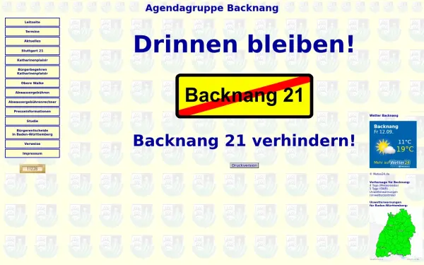 Keywords: Agendagruppe, Backnang, Agendagruppe Backnang, Lokale Agendagruppe, Lokale Agendagruppe Backnang, Agenda-Gruppe, Agenda 21, Lokale Agenda 21, BUND, Bürger, Bürgerinitiative, Bürgerbegehren, Bürgerentscheid, Demokratie, Ehrenamt, ehrenamtliches...