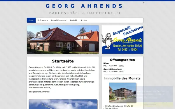 Keywords: Startseite, Home, Georg Ahrends, Georg, Ahrends, Baugeschäft, Dachdeckerei, Norden, 26506, Niedersachsen, Neubauten, Umbauten, Immobilien