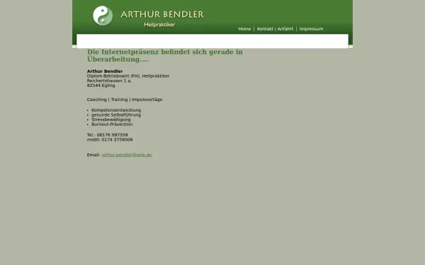 Description: Arthur Bendler. Heilpraktiker. Ich therapiere und coache Menschen, die privat, beruflich oder gesundheitlich an einem Wendepunkt angekommen sind.