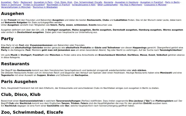 Ausgehen Freizeit Feiern in Deutschland auf ausgehen.de