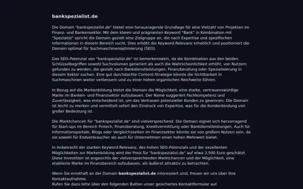 Hier findest du die wichtigsten Informationen, die wir über bankspezialist.de in unserem System gesammelt haben. Wir hoffen, wir können dir damit weiterhelfen, das Internet und seinen Aufbau besser zu verstehen...