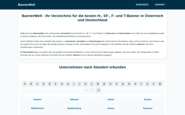 Description: Verzeichnis der besten H-, SF-, F- und T-Banner in Österreich und Deutschland. Standort, Kontakt und Bewertungen.