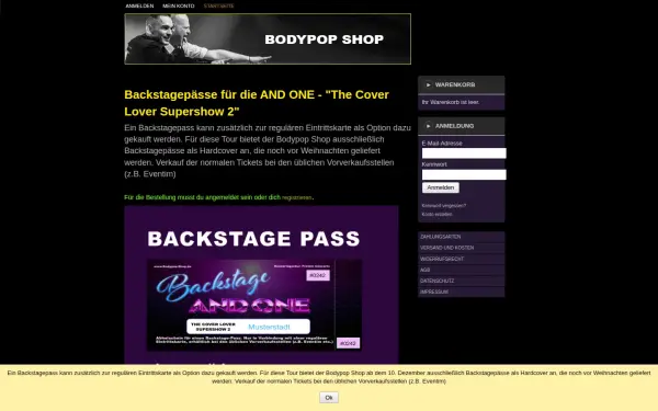 Description: Bodypop Shop - Der Ticketshop für Konzerttickets und Backstagepässe von AND ONE und Steve Naghavi