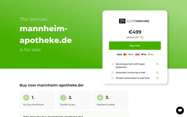 Description: Die Domain mannheim-apotheke.de steht zum Verkauf. Sie können diese Domain jetzt per Sofortkauf zum Festpreis mit dem Treuhandservice von ELITEDOMAINS kaufen.