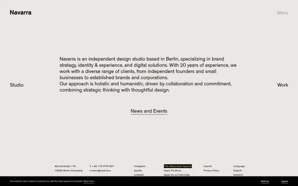 Description: Eine Agentur, die in den Bereichen Markenstrategie, Digital Solutions, Editorial Design, Gestaltung im Raum, Verpackungsdesign, Motion Design und Marketing tätig ist.