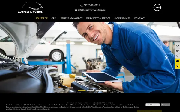 Description: Das Autohaus v. Wülfing ist Ihr Opel Partner im Rhein-Sieg-Kreis. Wir bieten Jungwagen, Gebrauchtwagen mit zertifizierter Garantie und Werkstatt-Service für Ihr Sie finden und in Meckenheim, Rheinbach, Wachtberg, Euskirchen, Swisttal Ahrweiler und...