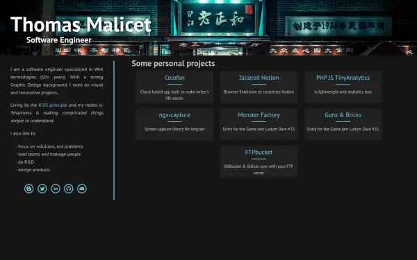 Description: Thomas Malicet - Software Engineer mostly working with Typescript, JaveScript, C#, PHP.