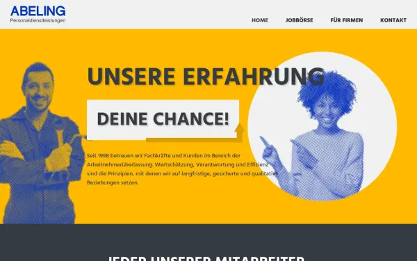 Description: Unsere Erfahrung als Personaldienstleister ist Ihre Chance zum beruflichen Erfolg! Abeling - Ihr Partner bei handwerklichen, technischen & logistischen Berufen.