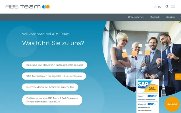 Description: ABS Team ist Ihr Partner für die End-2-End-Digitalisierung von HR-Prozessen mit SAP-Lösungen für HCM: Von der Analyse und Beratung bis zur Implementierung und zum laufenden Support produktiver Systemlandschaften.