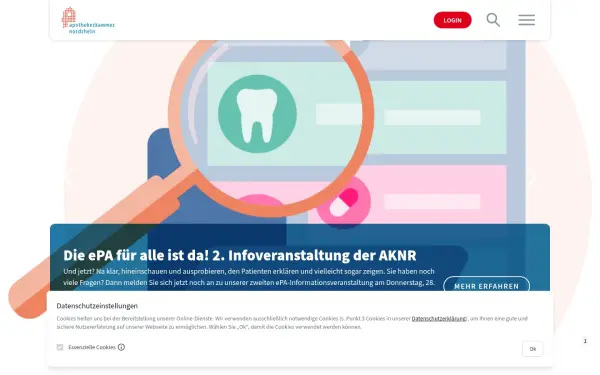 Description: Die AKNR ist als Körperschaft des öffentlichen Rechts Trägerin der berufsständischen Selbstverwaltung der Apothekerinnen und Apotheker in Nordrhein.
