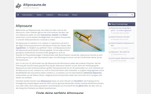 Description: Die ganze Welt der Altposaune: große Produkt-Datenbank, Infos zu Zubehör, Noten, Zugtabellen und Diskussionsforum für Posaunisten.