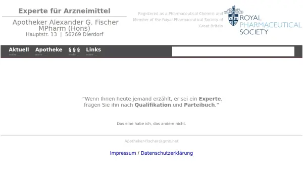 Der Betreiber dieser Domain befindet sich in 56269 Dierdorf Registered as a Pharmaceutical Chemist and