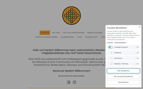 Description: Die Hauptseite des Drehmoment Disc Golf Vereins Bremen