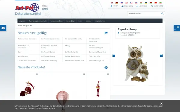 Description: Direkter Importeur von Geschenkartikel, Großhandel für Möbel und Dekorationsartikel. 16 Städte in Polen. Niedrigste Preise, umfangsreichste Auswahl – direkter Importeur! Überzeugen Sie sich selbst.