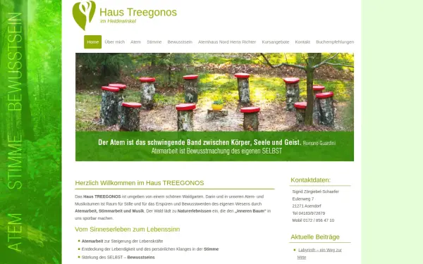 Description: Das Haus TREEGONOS ist umgeben von einem schönen Waldgarten. Darin und in unseren Atem- und Musikräumen ist Raum für Stille und für das Erspüren und Bewusstwerden des eigenen Wesens durch Atemarbeit, Stimmarbeit und Musik. Der Wald lädt zu...