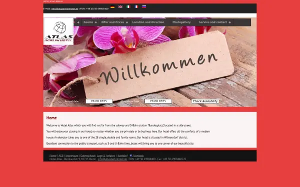 Description: Seien Sie herzlich begrüßt im Hotel Atlas Berlin. Sie finden unser Haus nicht weit vom U-und S-Bahnhof „Bundesplatz", in einer ruhigen Seitenstraße gelegen