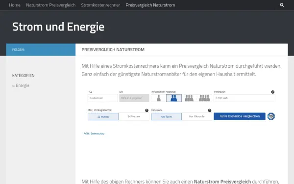 Description: Bester Preisvergleich für Naturstrom und Ökostrom. Unabhängig, tagesaktuell und kostenlos bieten wir die besten Naturstrompreise.