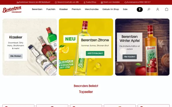 Description: Bestelle deine Spirituosen online ✓ Berentzen, Puschkin, Bommerlunder, Strothmann & vieles mehr✓ Versandkostenfrei ab 45€✓ Jetzt entdecken!