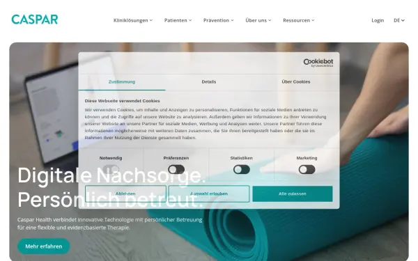Description: Evidence-based digital prevention, rehabilitation, and aftercare. Caspar Software and Caspar Clinic deliver flexible therapy with personal support.