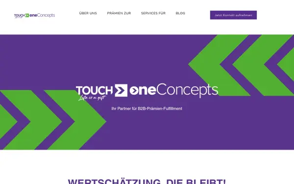 Description: Als Touch oneConcepts und Experte im Bereich Prämien-Fulfillment sind wir darauf spezialisiert, Ihre Kunden- und Mitarbeiterbindungen durch hochwertige Sachprämien einen einzigartigen Mehrwert zu verleihen.